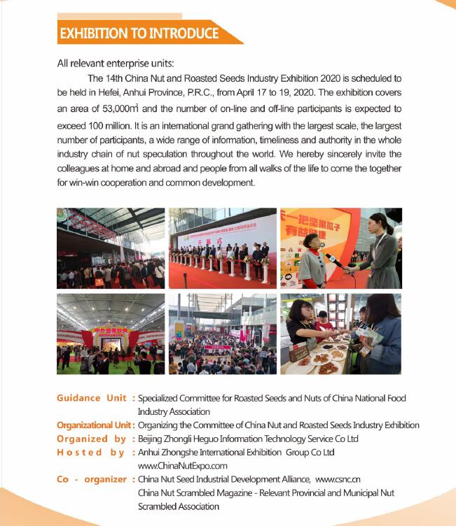 Invitation of 2020 the 14th China Roasted Seeds and Nuts, Foods & Ingredients, Equipment and Packaging Exhibition