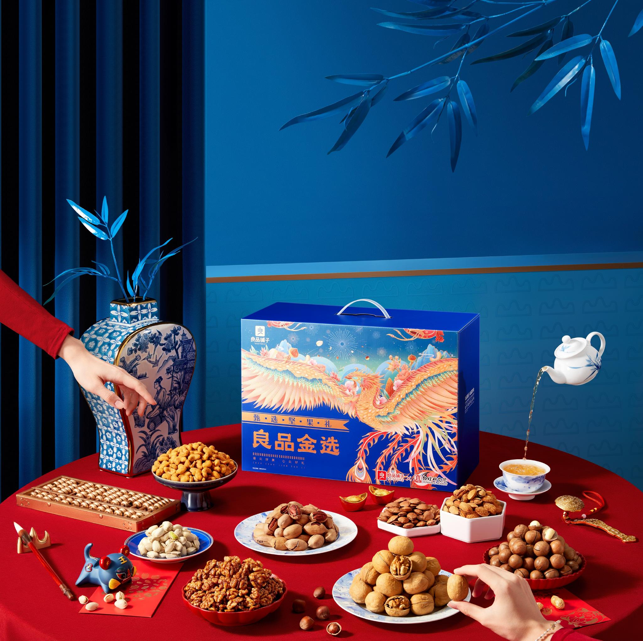 小小礼盒满载祝福,也传递品牌温度。“甄选坚果礼?良品金选礼盒”是良品铺子今年年货节主推的限定新年礼盒,包装和往年一样走“国风”路线,九色鹿、飞天等敦煌元素“穿越”千年而来。礼盒内涵更为丰富,不仅有美国加州南部的巴旦木、新疆阿克苏地区的核桃、越南的腰果等经典坚果,更有五十年珍稀红松、阳光加州饱满开心果、澳洲夏威夷果和薄壳肉厚碧根果,都是“新鲜饱满、颗粒完整”的金选大坚果。
