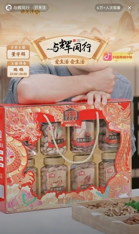 沃隆坚果与“与辉同行”强强联合,在直播间中推出财源滚滚、阖家悦礼、财运亨通等坚果礼盒,一时间成为消费者热议的焦点,掀起了一股购买热潮。